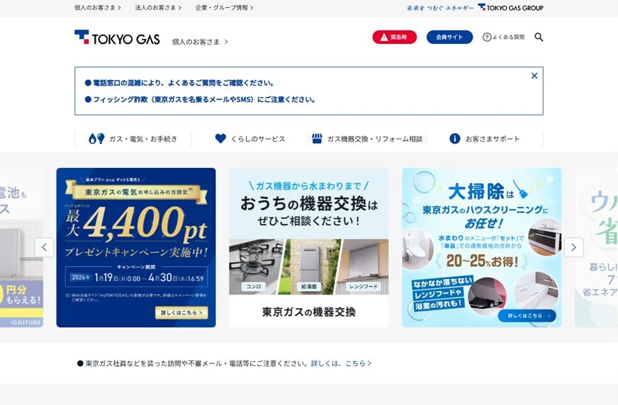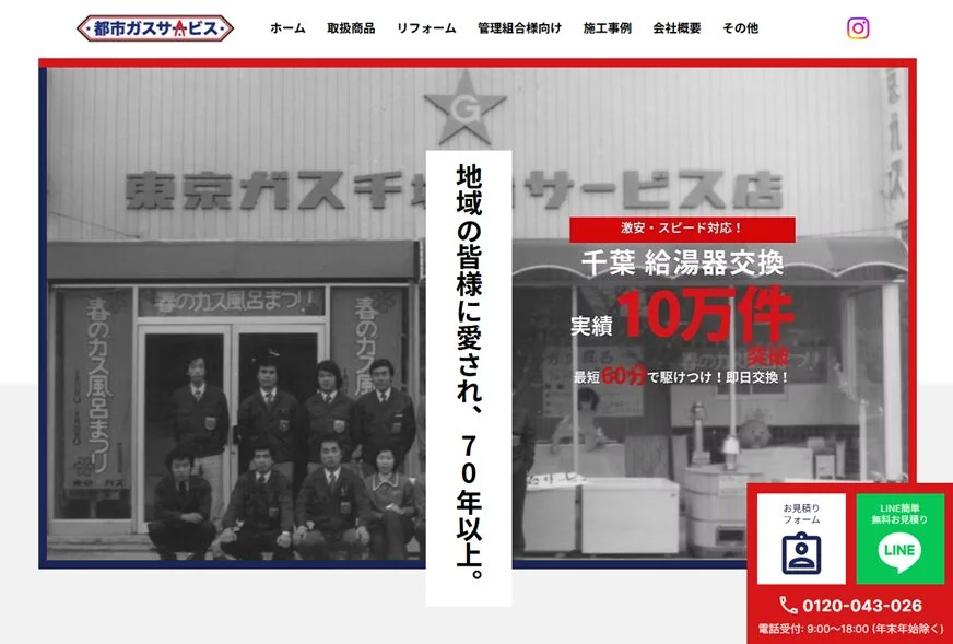 日本でもっとも歴史のある都市ガス事業者、東京ガスが行うガス機器交換・修理サービスです。大手企業ならではの法令を遵守した品質の高い工事を強みとしています。