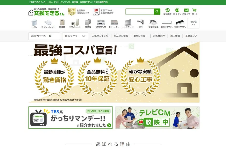 商品保証と工事保証が両方とも10年間無料なので、安心して使用を続けられます。