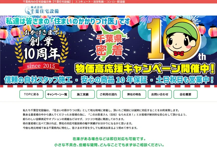 公式サイトに記載されているのは工事費や撤去費などが含まれた料金で、追加費用が発生する心配がありません。千葉市内にサービスセンターがあり、千葉県全域に対応しています。